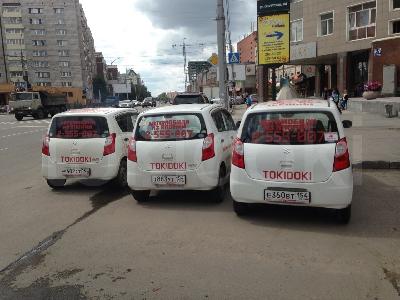 Сотрудники компании Токидоки эксплуатируют автомобили с фирменными надписями.