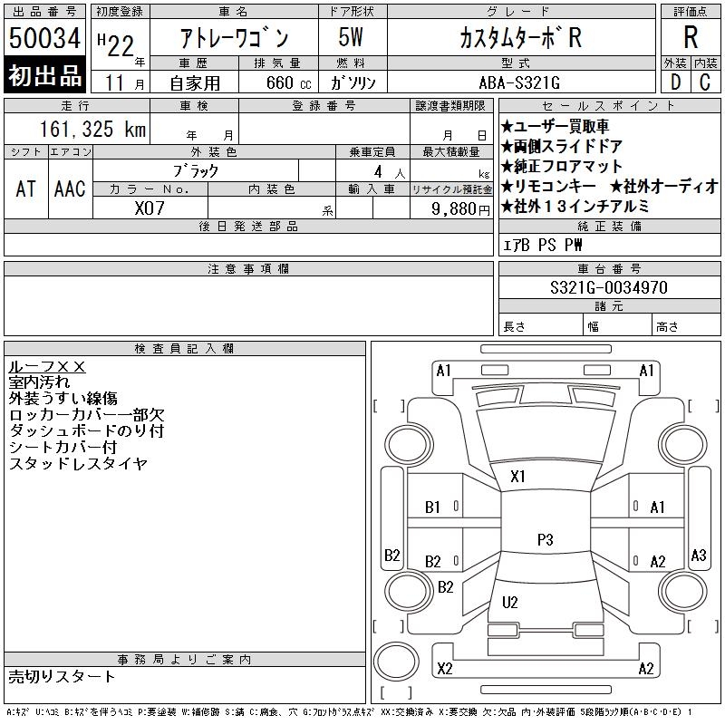 DAIHATSU ATRAI WAGON custom turbo R 2010 года - лот 50034 от 04.11.2025