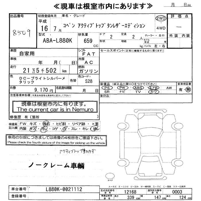 DAIHATSU COPEN язык Leather Edition active top 2004 года - лот 8509 от 24.10.2025