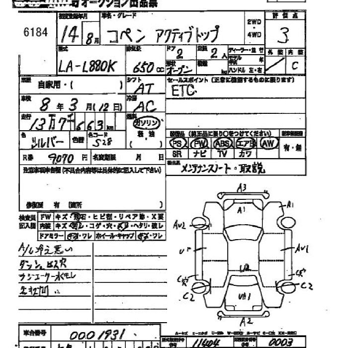 DAIHATSU COPEN active top 2002 года - лот 6184 от 23.10.2025