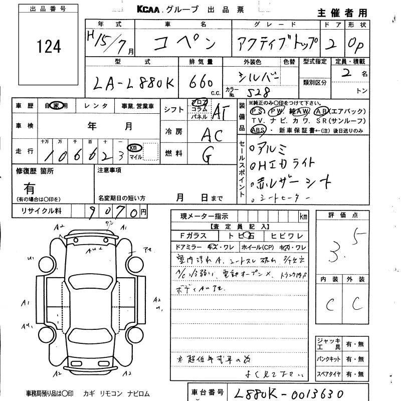 DAIHATSU COPEN active top 2003 года - лот 124 от 23.10.2025