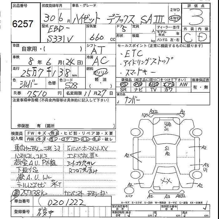 DAIHATSU HIJET VAN 4WD Deluxe SAIII 2018 года - лот 6257 от 23.10.2025