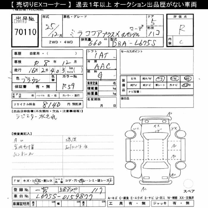 DAIHATSU MIRA COCOA plus X специальный ... 2013 года - лот 70110 от 01.11.2025