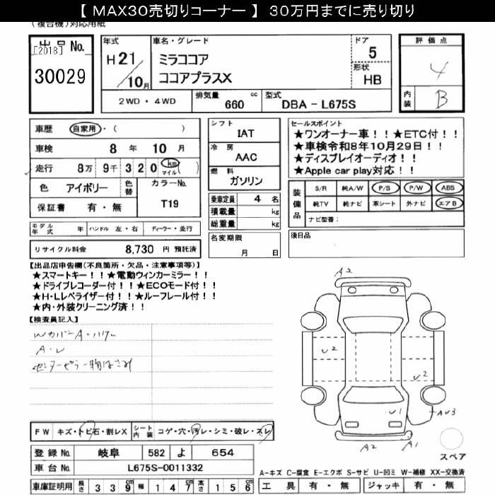 DAIHATSU MIRA COCOA plus X 2009 года - лот 30029 от 01.11.2025