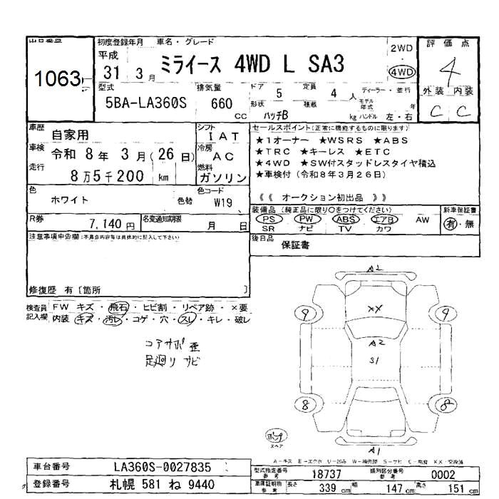 DAIHATSU MIRA E:S 4WD L SA III 2019 года - лот 1063 от 31.10.2025