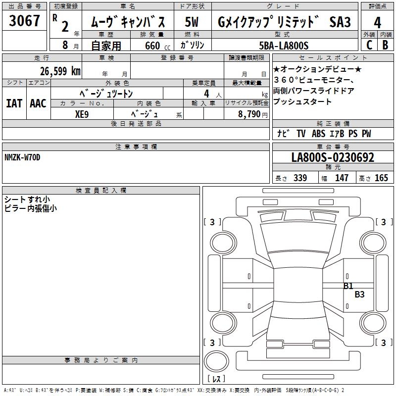 DAIHATSU MOVE CANBUS G... up limited SA3 2020 года - лот 3067 от 30.10.2025