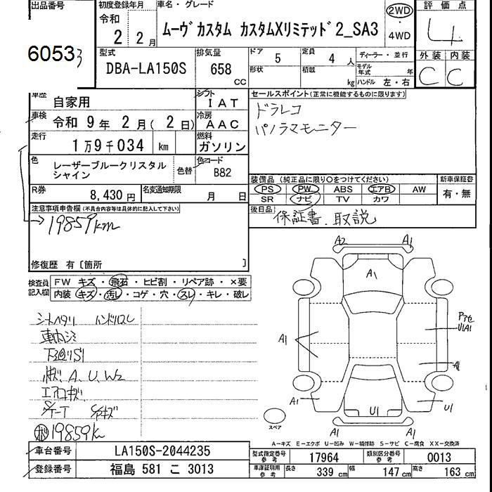 DAIHATSU MOVE custom X LTD II SA III 2020 года - лот 6053 от 23.10.2025