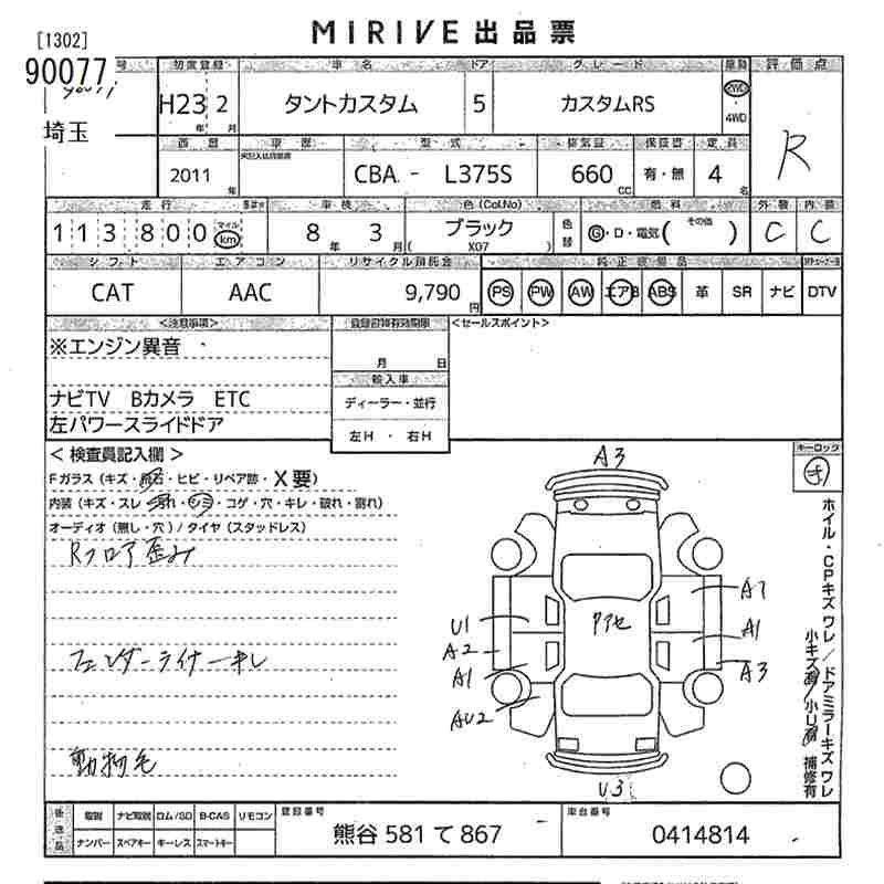 DAIHATSU TANTO custom RS 2011 года - лот 90077 от 22.10.2025