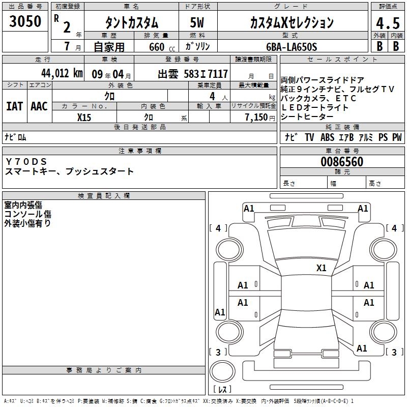 DAIHATSU TANTO custom X selection 2020 года - лот 3050 от 25.10.2025