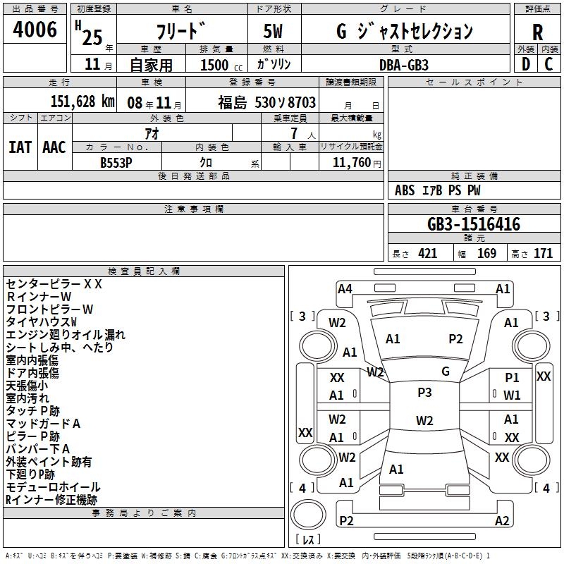 HONDA FREED G Just selection 2013 года - лот 4006 от 30.10.2025