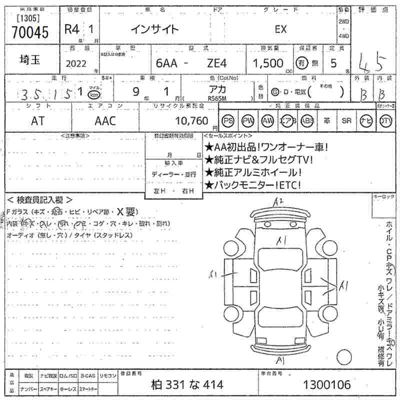 HONDA INSIGHT EX 2022 года - лот 70045 от 12.11.2025