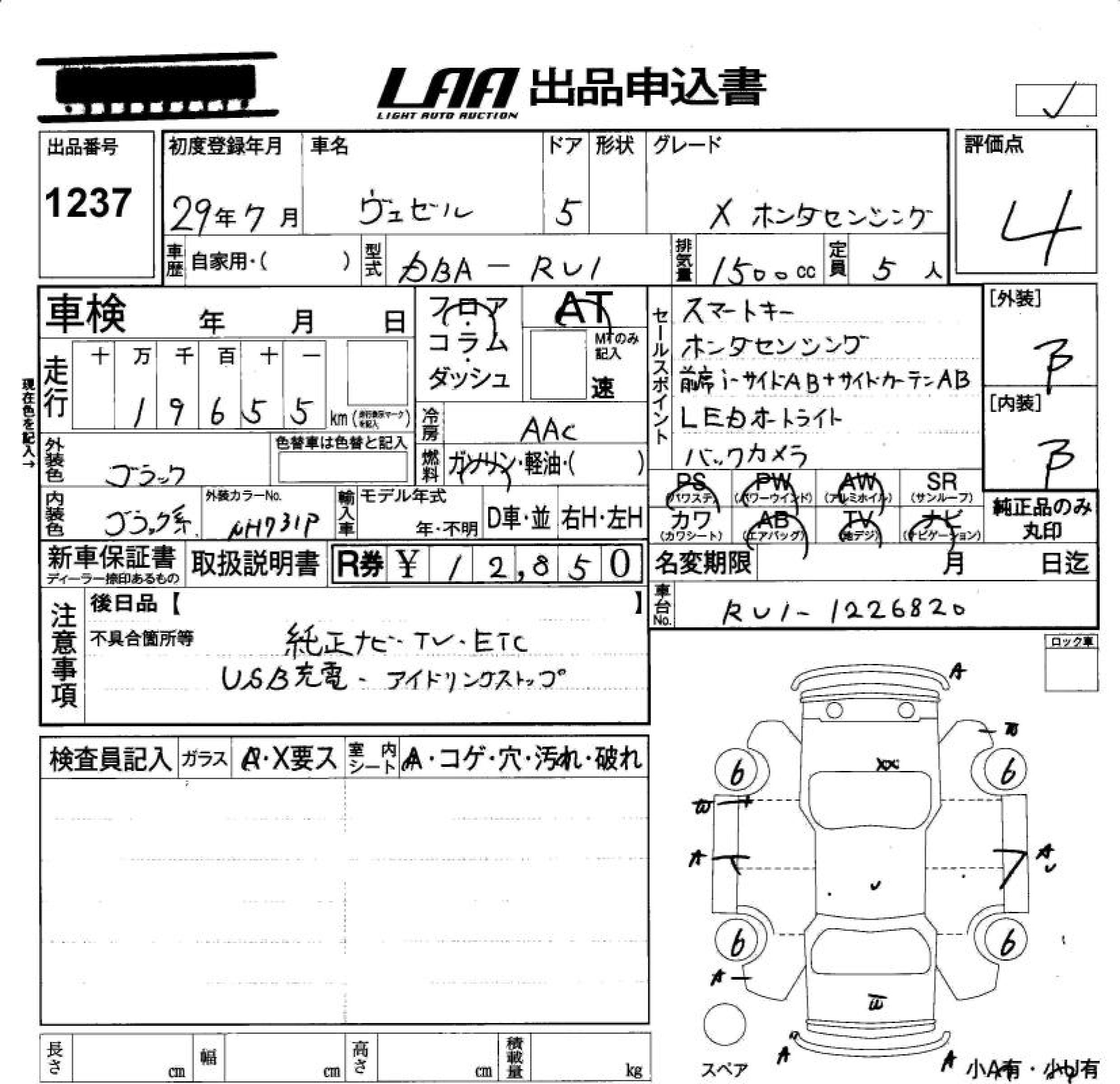HONDA VEZEL X. Honda ..... 2017 года - лот 1237 от 31.10.2025