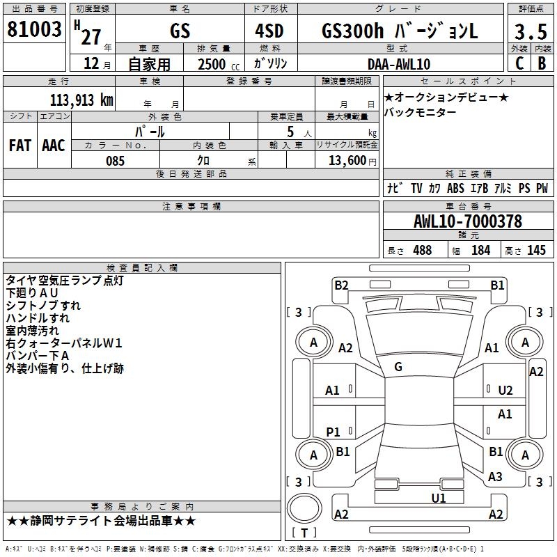 LEXUS GS GS300h VERSION L 2015 года - лот 81003 от 23.10.2025
