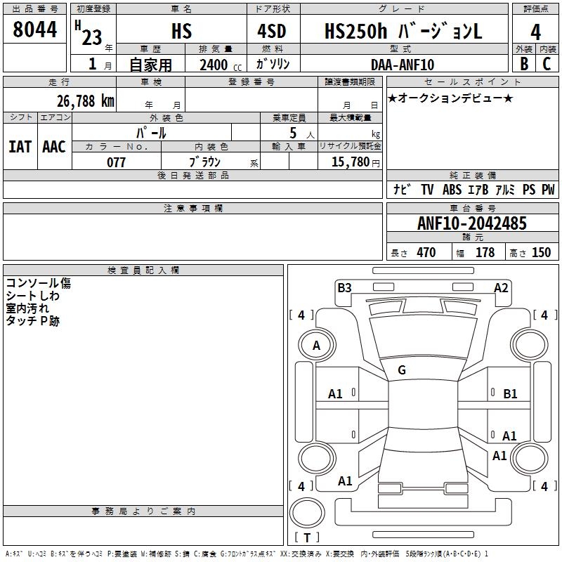 LEXUS HS HS250h VERSION L 2011 года - лот 8044 от 23.10.2025