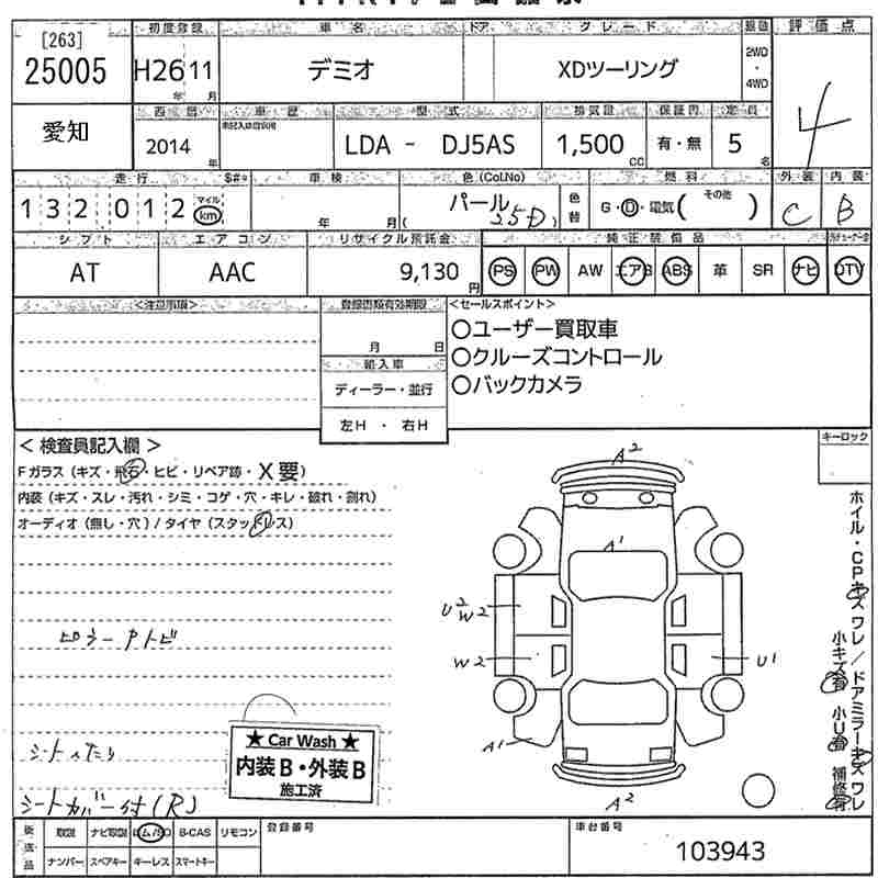 MAZDA DEMIO XD Touring 2014 года - лот 25005 от 24.10.2025