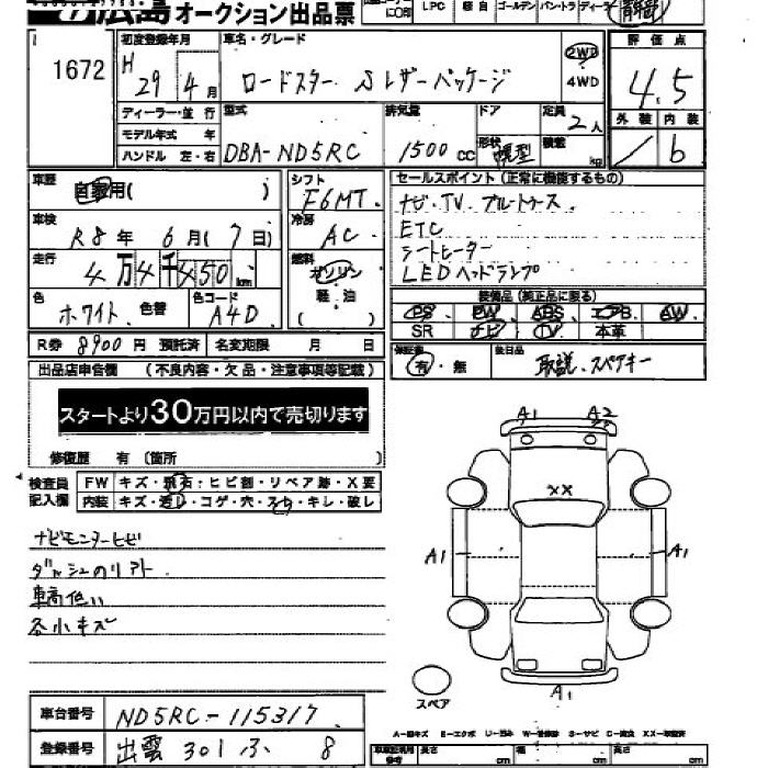 MAZDA ROADSTER S комплектация с кожаной отделкой 2017 года - лот 1672 от 23.10.2025