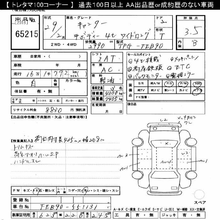 MITSUBISHI CANTER простой кузов 4t Wide Long 2017 года - лот 65215 от 01.11.2025
