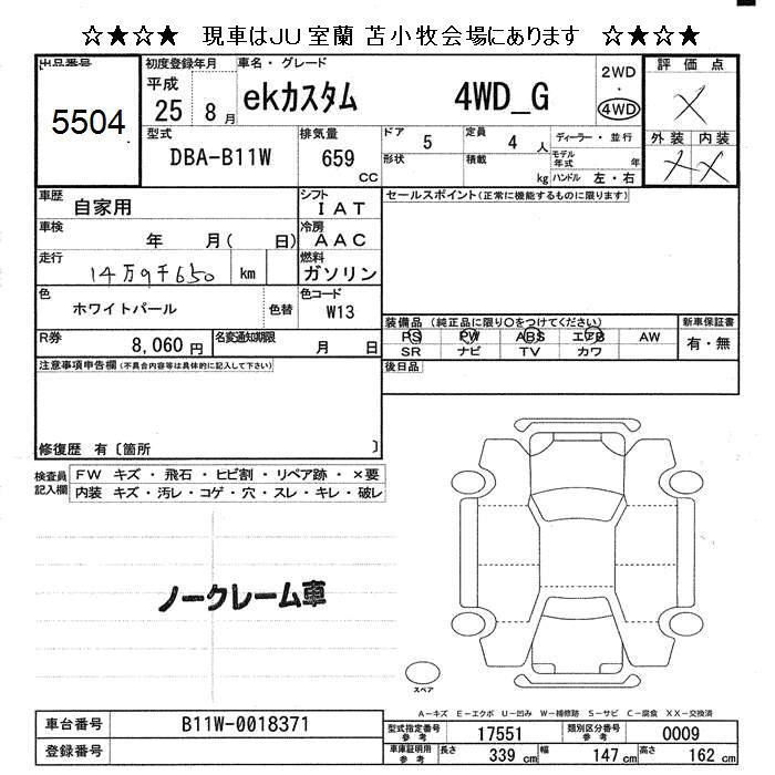 MITSUBISHI EK CUSTOM 4WD G 2013 года - лот 5504 от 24.10.2025