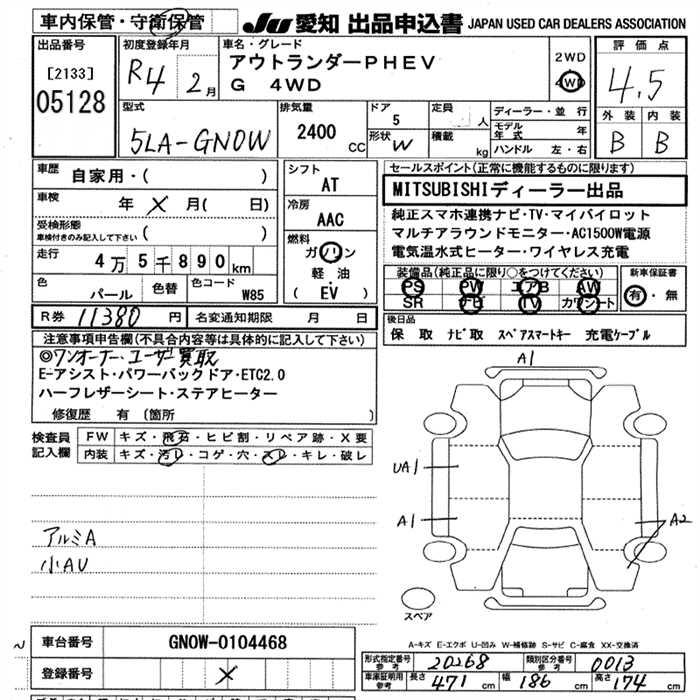 MITSUBISHI OUTLANDER PHEV G 4WD 2022 года - лот 5128 от 06.11.2025