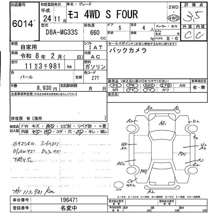 NISSAN MOCO 4WD S FOUR 2012 года - лот 6014 от 23.10.2025