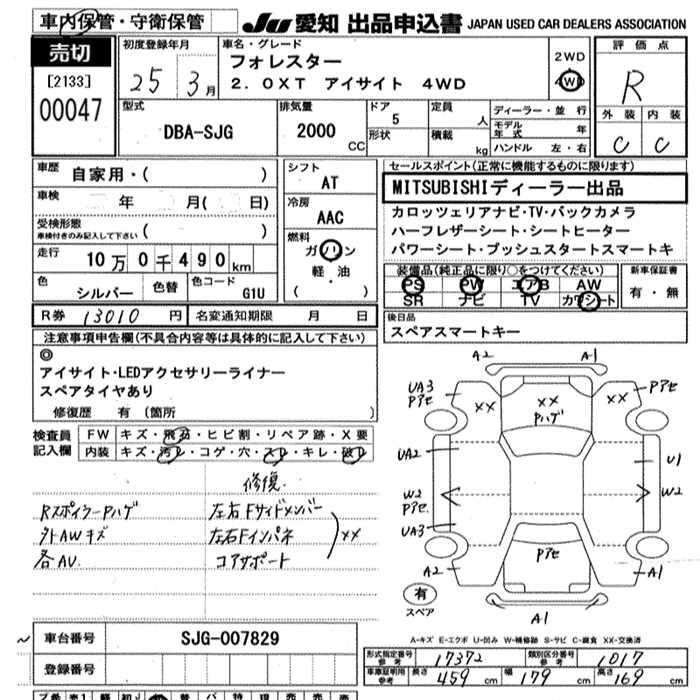 SUBARU FORESTER 2.0XT EyeSight 4WD 2013 года - лот 47 от 06.11.2025