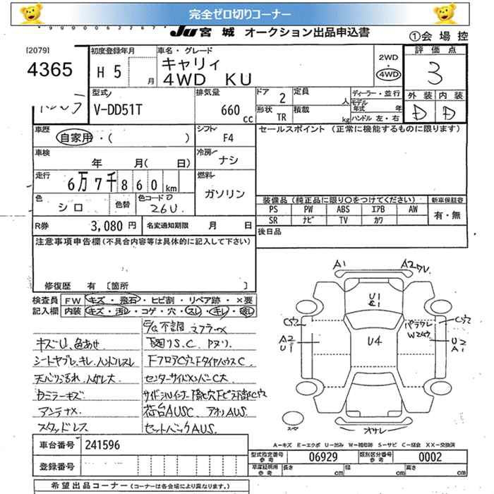 SUZUKI CARRY 4WD KU 1993 года - лот 4365 от 24.10.2025