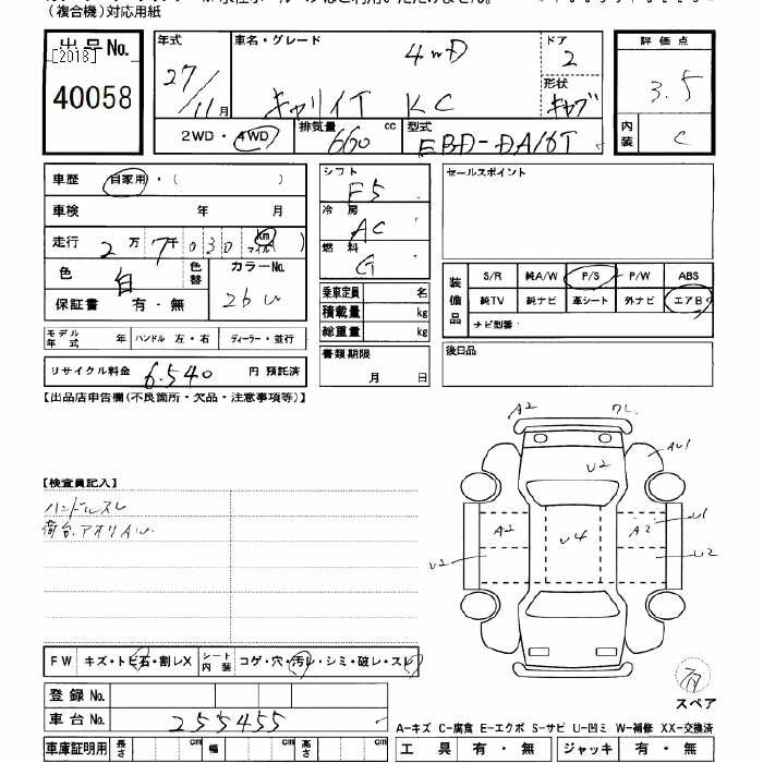SUZUKI CARRY 4WD KC 2015 года - лот 40058 от 01.11.2025