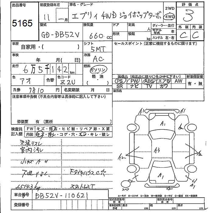SUZUKI EVERY VAN 4WD Joy Pop turbo 1999 года - лот 5165 от 23.10.2025