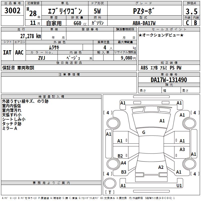 SUZUKI EVERY WAGON PZ turbo 2016 года - лот 3002 от 28.10.2025