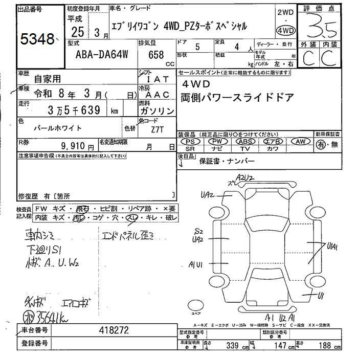 SUZUKI EVERY 4WD PZ turbo специальный 2013 года - лот 5348 от 23.10.2025