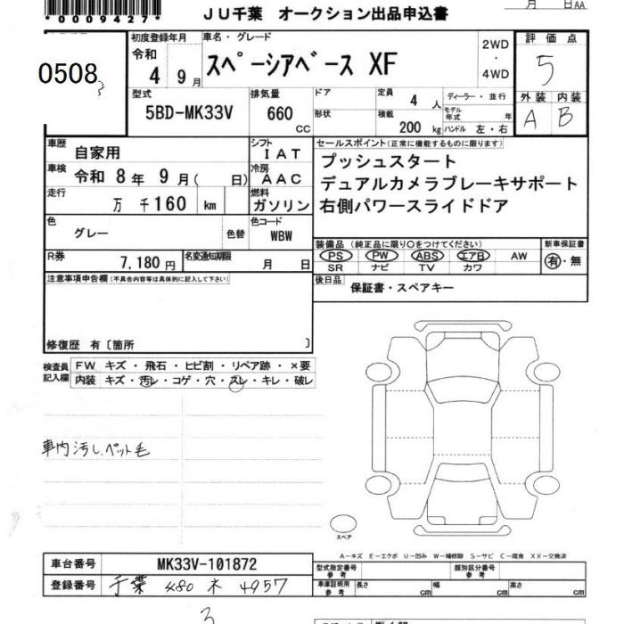 SUZUKI SPACIA BACE XF 2022 года - лот 508 от 24.10.2025