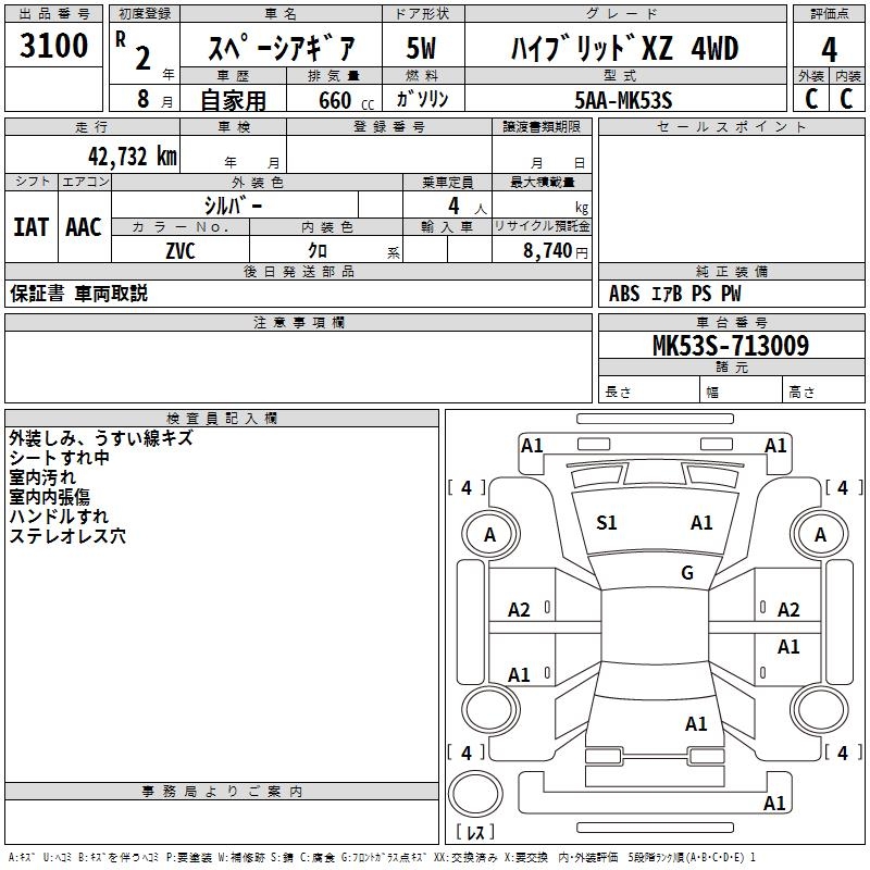 SUZUKI SPACIA GEAR hybrid XZ 4WD 2020 года - лот 3100 от 28.10.2025