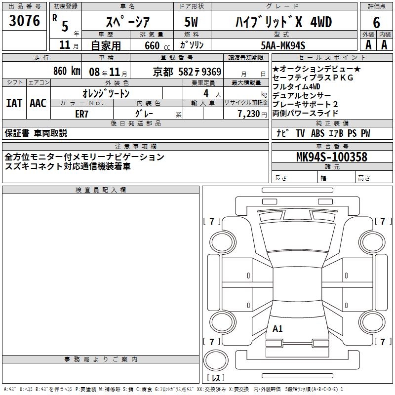 SUZUKI SPACIA hybrid X 4WD 2023 года - лот 3076 от 25.10.2025