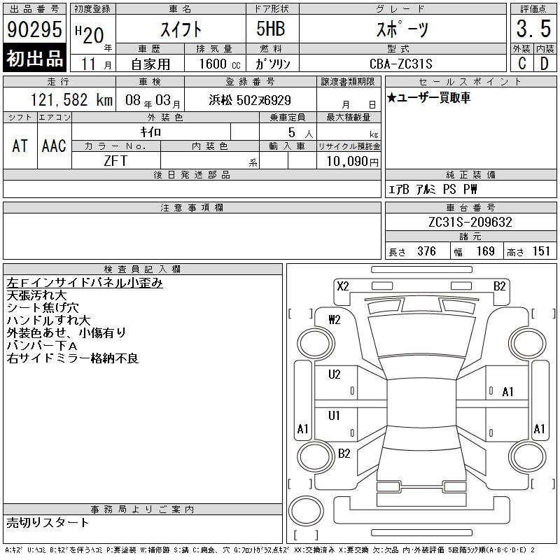SUZUKI SWIFT спорт 2008 года - лот 90295 от 22.10.2025