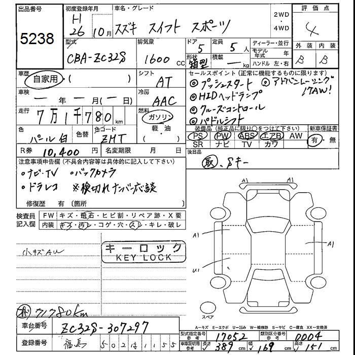 SUZUKI SWIFT спорт 2014 года - лот 5238 от 23.10.2025