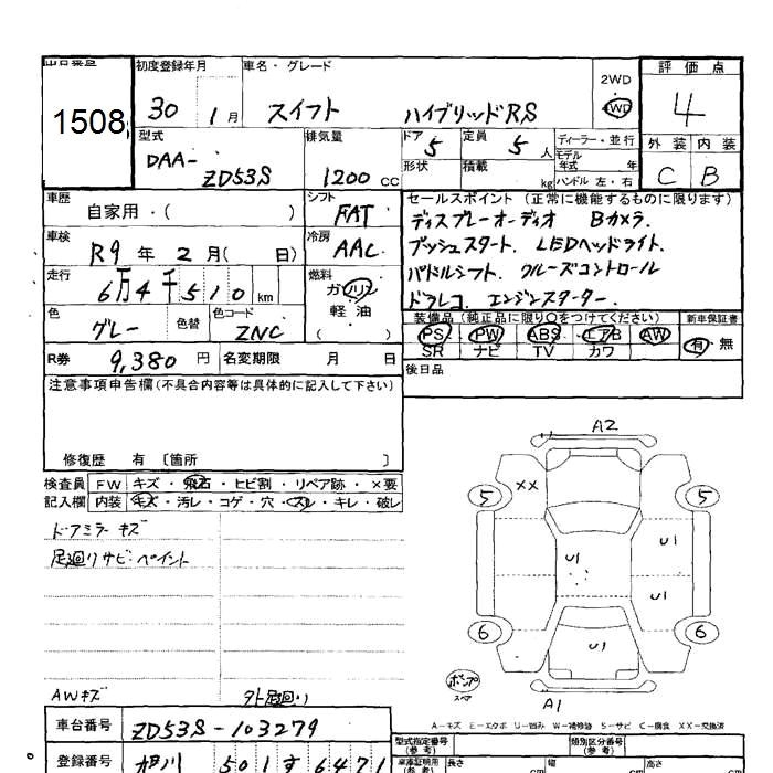 SUZUKI SWIFT 4WD hybrid RS 2018 года - лот 1508 от 31.10.2025