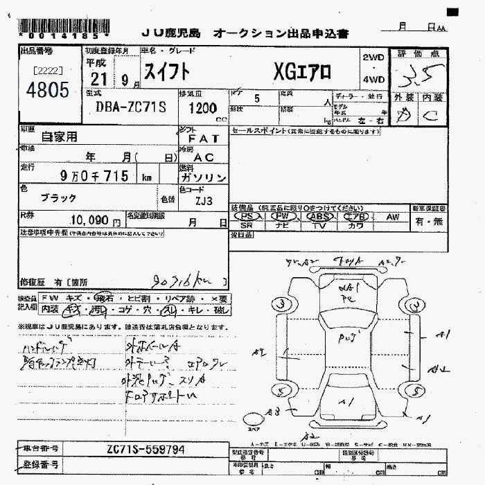 SUZUKI SWIFT XG aero 2009 года - лот 4805 от 07.11.2025