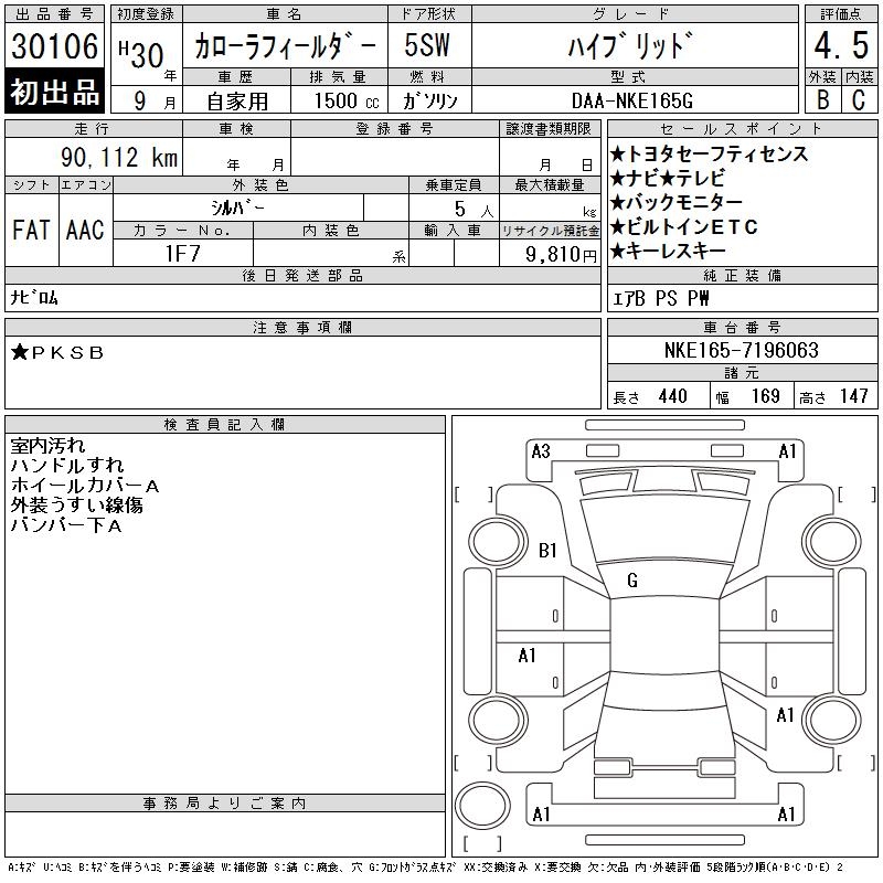 TOYOTA COROLLA FIELDER hybrid 2018 года - лот 30106 от 15.10.2025