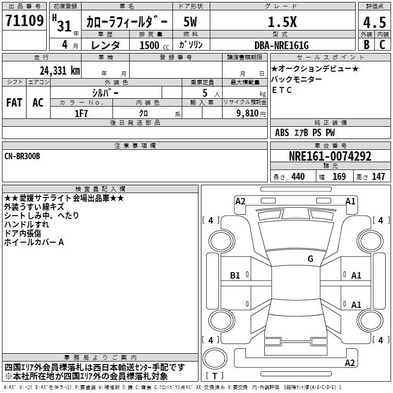 TOYOTA COROLLA FIELDER 1.5X 2019 года - лот 71109 от 14.10.2025