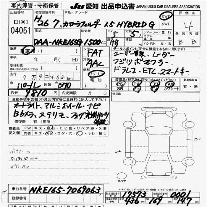 TOYOTA COROLLA FIELDER hybrid G 2014 года - лот 4051 от 16.10.2025