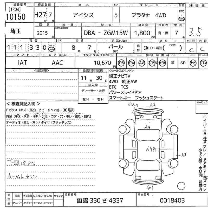 TOYOTA ISIS platana 4WD 2015 года - лот 10150 от 05.11.2025