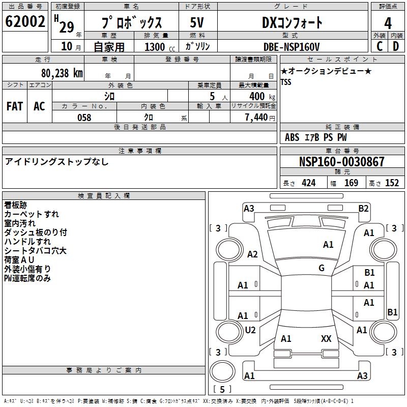 TOYOTA PROBOX DX комфорт 2017 года - лот 62002 от 08.11.2025