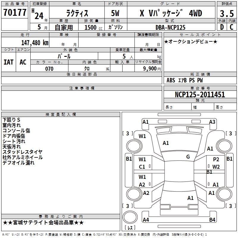 TOYOTA RACTIS X V package 4WD 2012 года - лот 70177 от 06.11.2025