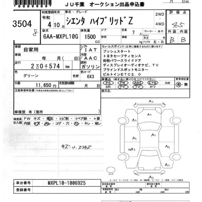 TOYOTA SIENTA hybrid Z 2022 года - лот 3504 от 31.10.2025