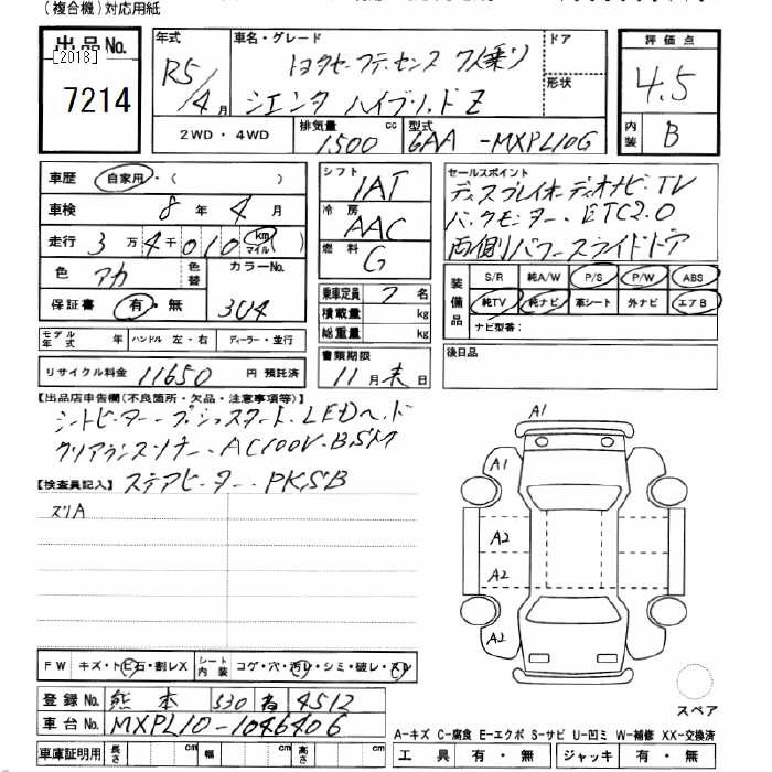 TOYOTA SIENTA hybrid Z 7 человек 2023 года - лот 7214 от 01.11.2025