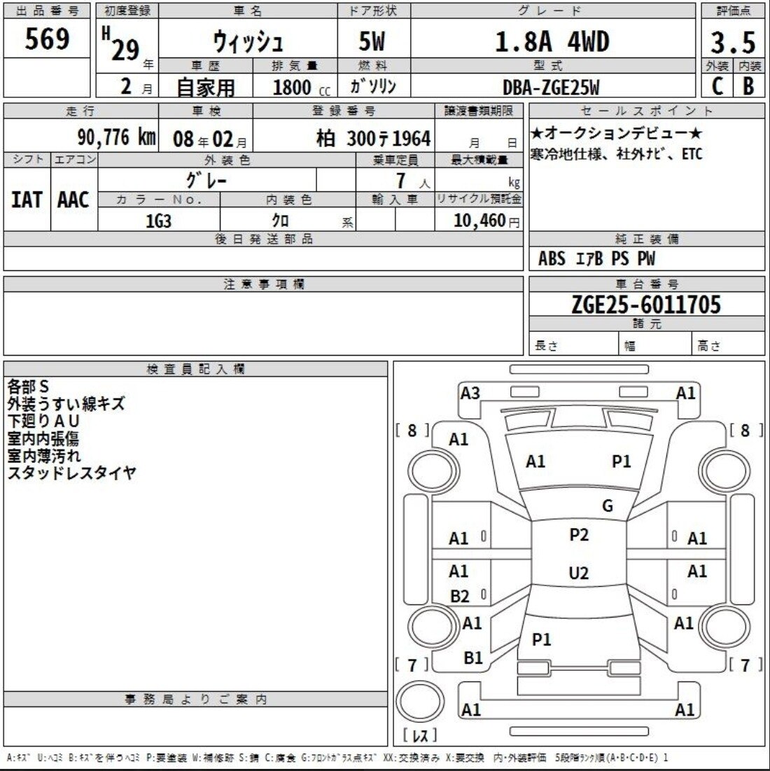 Итак, первые торги состоялись с оценкой 3,5 балла. Список замечаний состоял из множества мелких неглубоких царапин, выцвета сверху по кузову, особенно на крыше, а также пометки "местами ржавчина снизу".