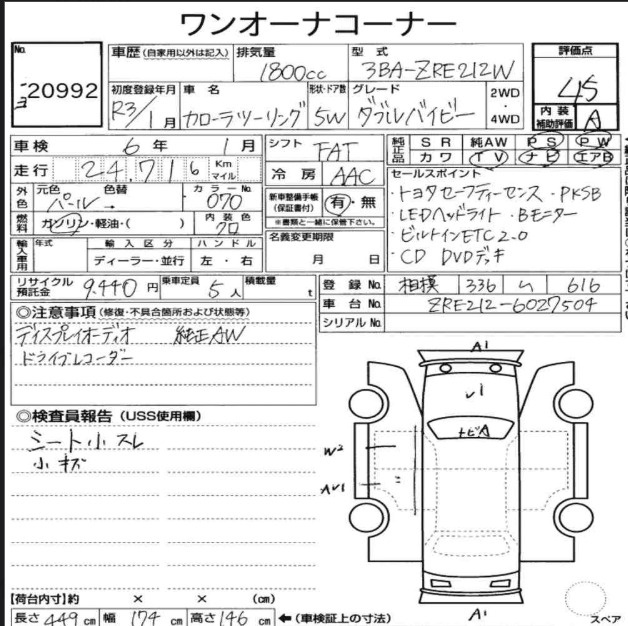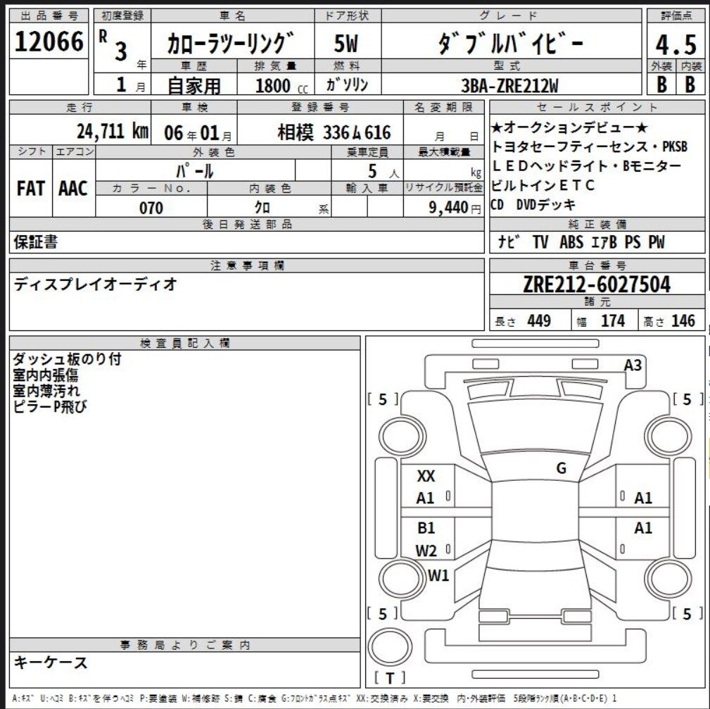 Едем дальше. На следующих торгах внезапно ни слова об окрасе. Лишь по кузову указаны мелкие царапины. Оценка - те же 4,5 балла. И ура, лот продан!