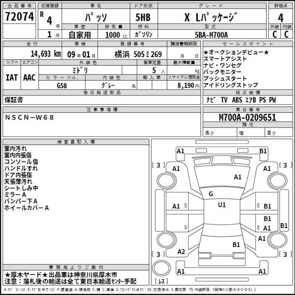 В частности, видим по схеме отметки A1(мелкая царапина по лаку), U1(едва заметная вмятинка), B1(тертая мелкая царапина, неглубокая). Далее есть отметка G на лобовом. Это замечание японцы называют скол на лобовом, но в 95% случаев это просто мелкие царапинки от дворников. То есть, само лобовое замены не требует.