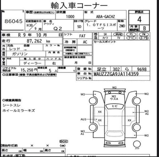 Дебют нашего персонажа состоялся с оценкой 4,5 балла и сопровождался целым букетом замечаний. Во-первых, три замененных элемента: две левые двери и капот. Во-вторых, окрас переднего левого крыла и заднего. И при всем этом безобразии почти высший балл! О чем думал инспектор, выставляя 4,5?