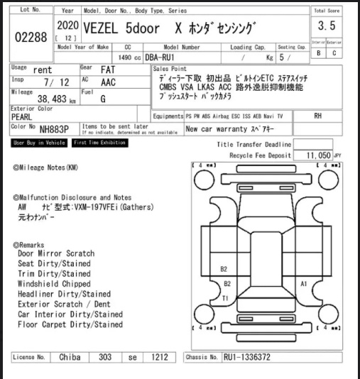 Да, на первые торги он вышел с оценкой 3,5 балла. В замечаниях отмечена глубокая вмятина с царапиной на заднем левом крыле и задней левой двери. Оба элемента, разумеется, под ремонт.